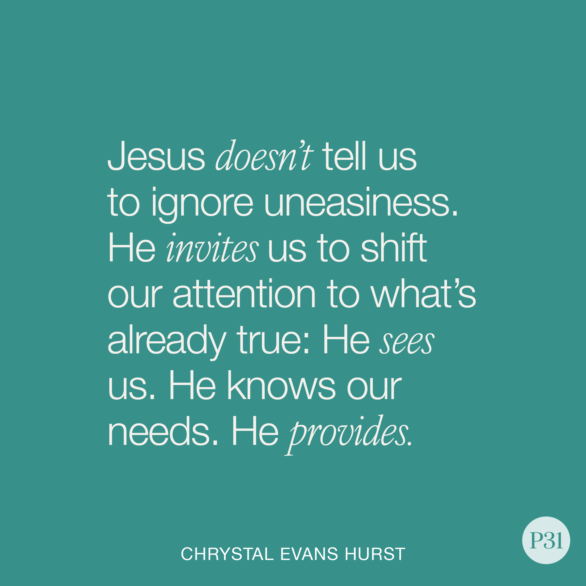 Jesus doesn’t tell us to ignore uneasiness. He invites us to shift our attention to what’s already true: He sees us. He knows our needs. He provides.