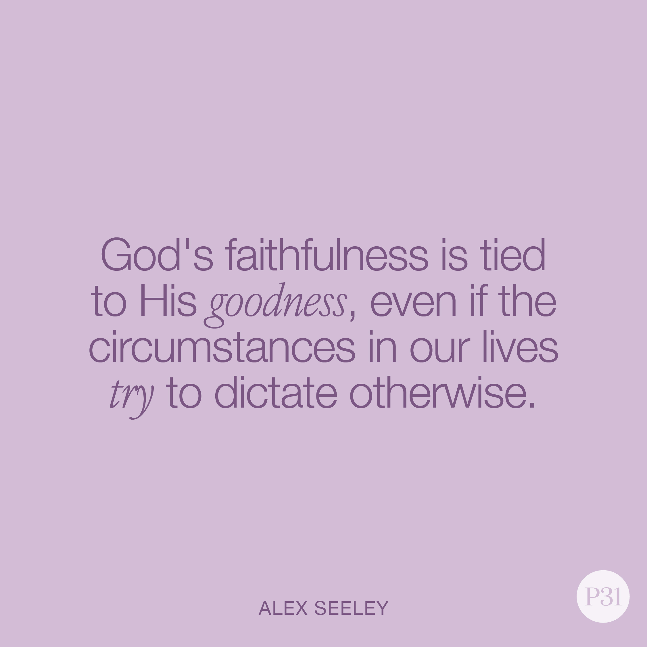God is never wrong. His ways are not our ways, and His thoughts are not our thoughts (Isaiah 55:8-9). A situation may be bad, but that doesn’t mean God’s character is bad. There are seasons we walk through that are not good, but God’s character is always good. He cannot be anything else. His faithfulness is tied to His goodness, even if the circumstances in our lives try to dictate otherwise.