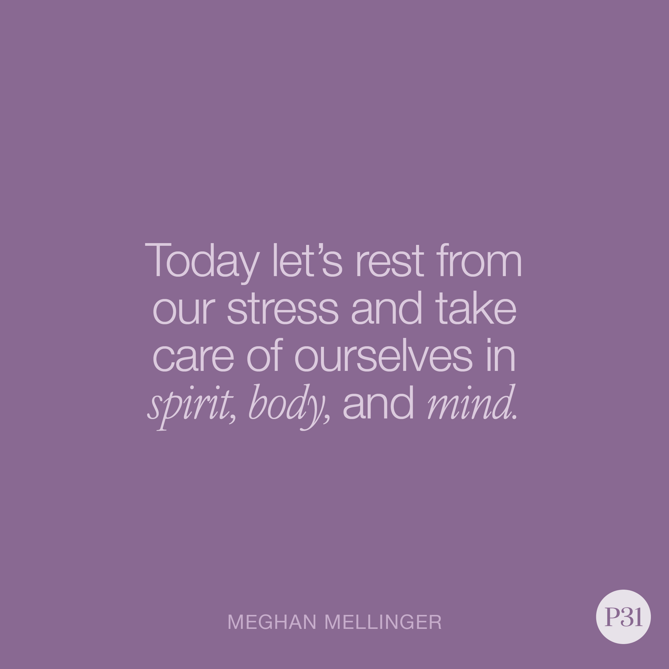 My body is always the first thing I neglect in times of stress. But 1 Corinthians 6:19-20 says our bodies are God’s temple, and we’re called to be good stewards. That might mean swapping Netflix for a walk, doing some de-stressing exercises, or practicing breathing techniques. Let's choose nourishment over neglect.